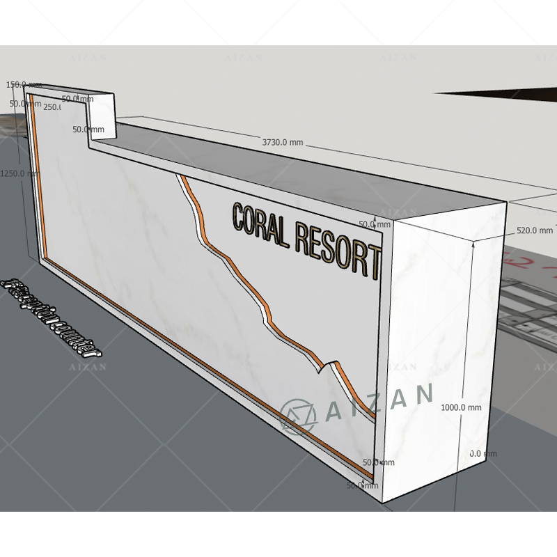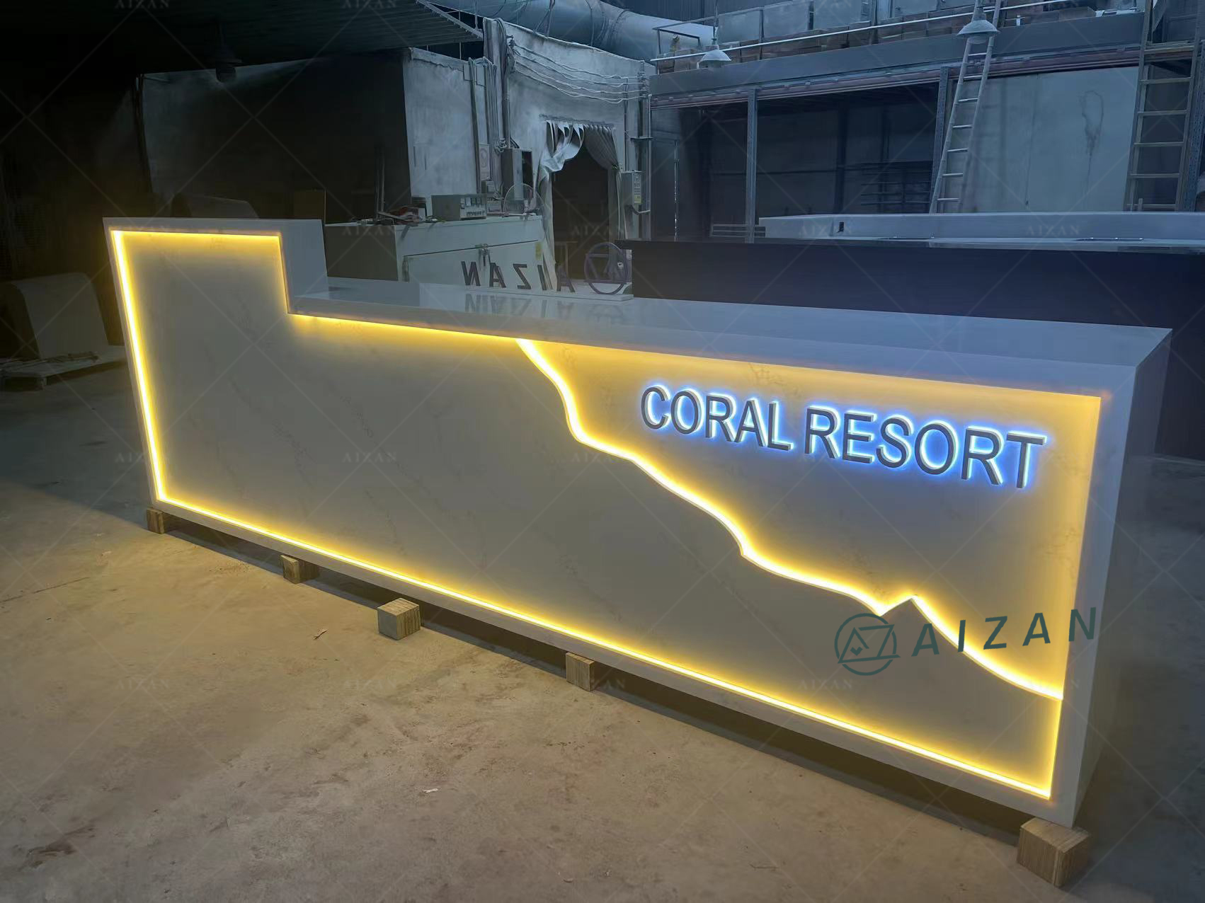 Material: 18mm plywood frame+12mm artificial stone finishing+ custom logo