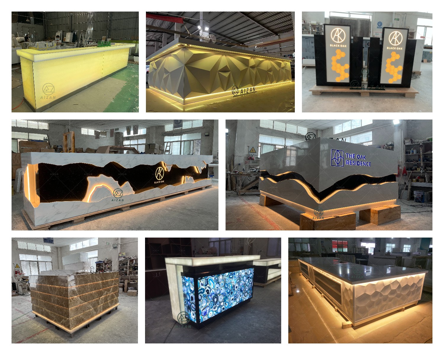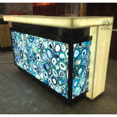 2. Material : 18mm plywood frame + 12mm Onyx Stone / Corian solid surface/artificial stone finishing for high quality wine bar counter