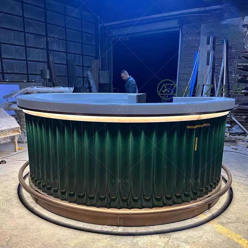 2. Material : 18mm plywood frame + 12mm Corian solid surface/artificial stone finishing for high quality wine bar counter